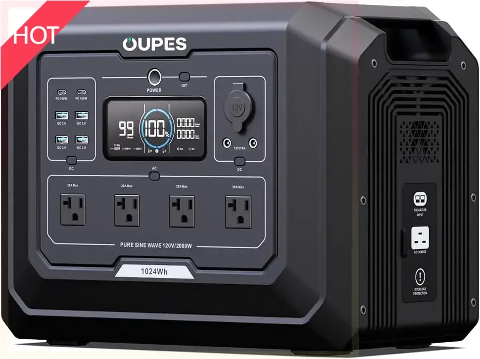1 Portable Power Station 2000W (4500W Peak), 1024Wh LiFePO4 Battery Generator with 1400W AC Charging & 800W Solar