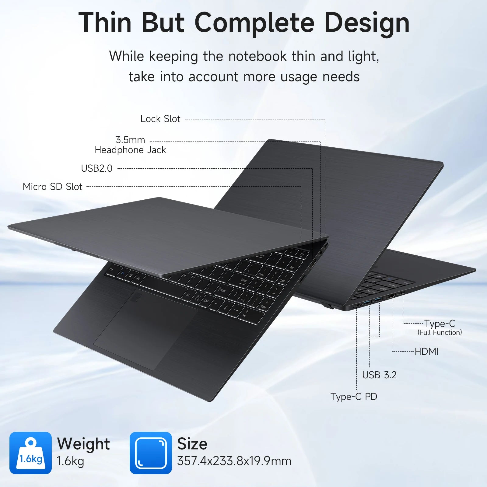 15.6 Inch Business Laptop Notebook PC CPU N5095 16GB RAM 512GB SSD Storage Windows 11 Fingerprint Recognition Backlit Keyboard
