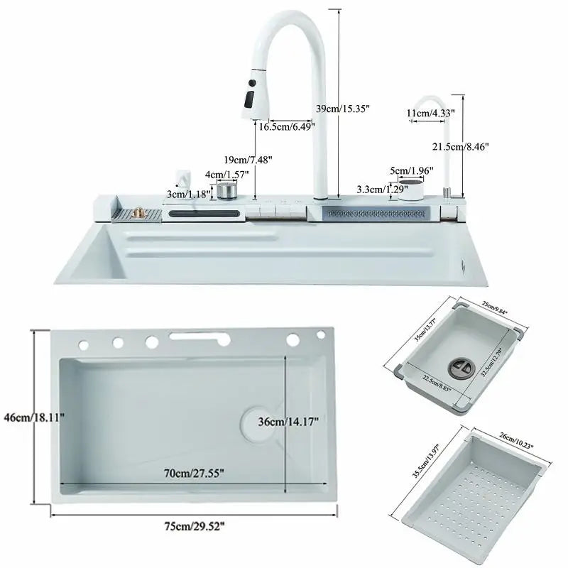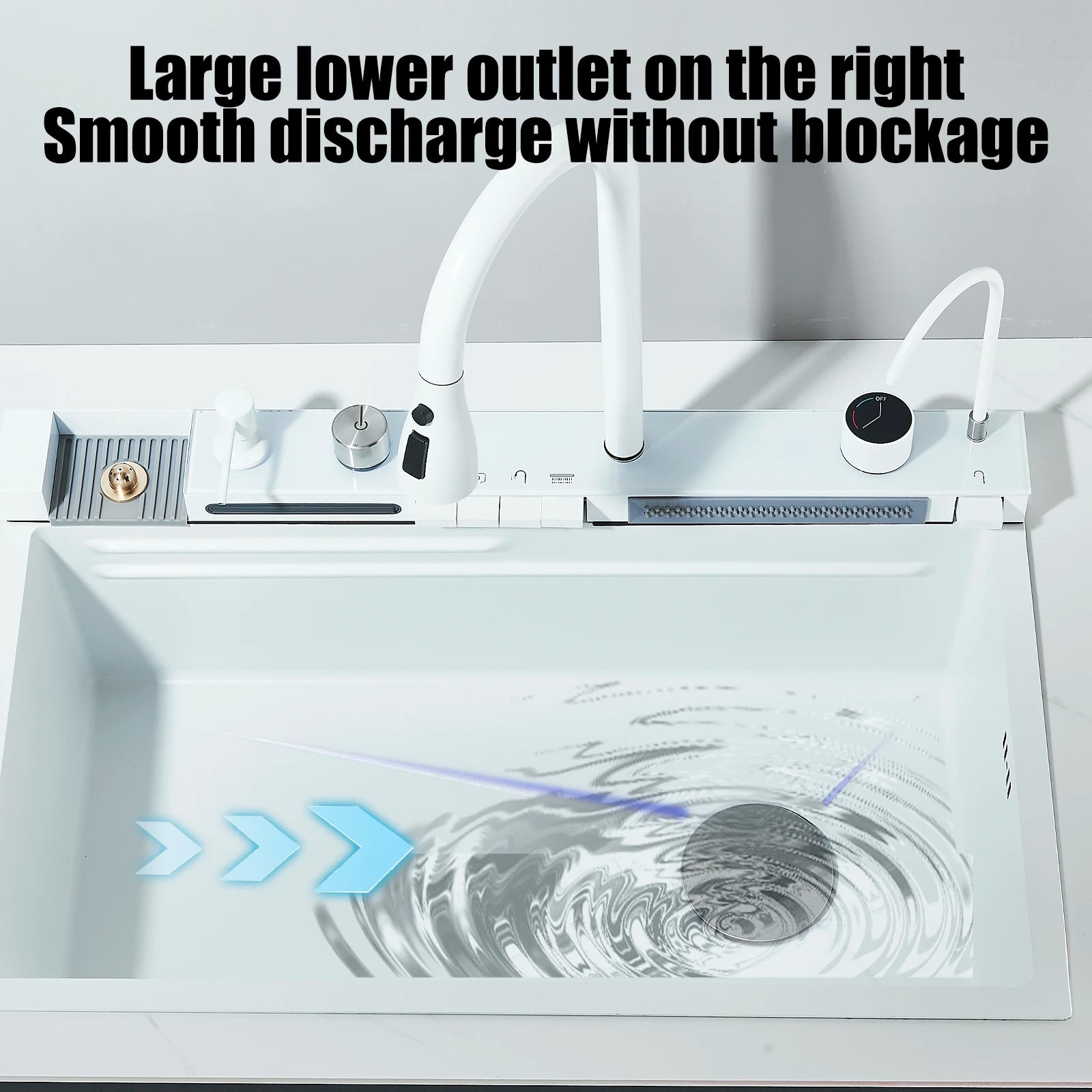 304 Stainless Steel Waterfall Kitchen Sink Large Single Slot Integrated Digital Display Faucet Set Soap Dispenser Cup Washer