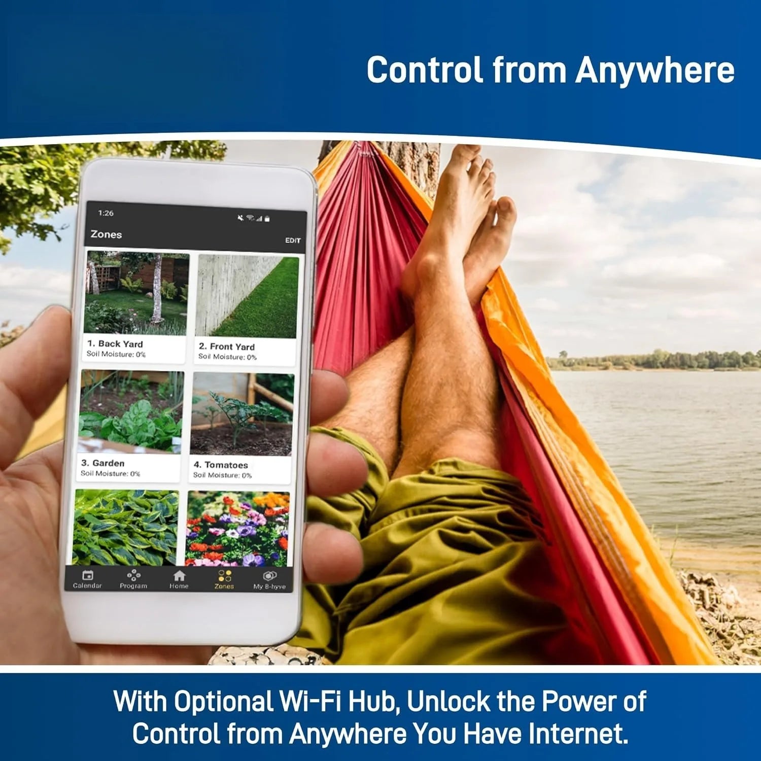 When paired with a Wi-Fi Hub, B-hyve controls watering based on your property attributes and the current high precision local weather data.