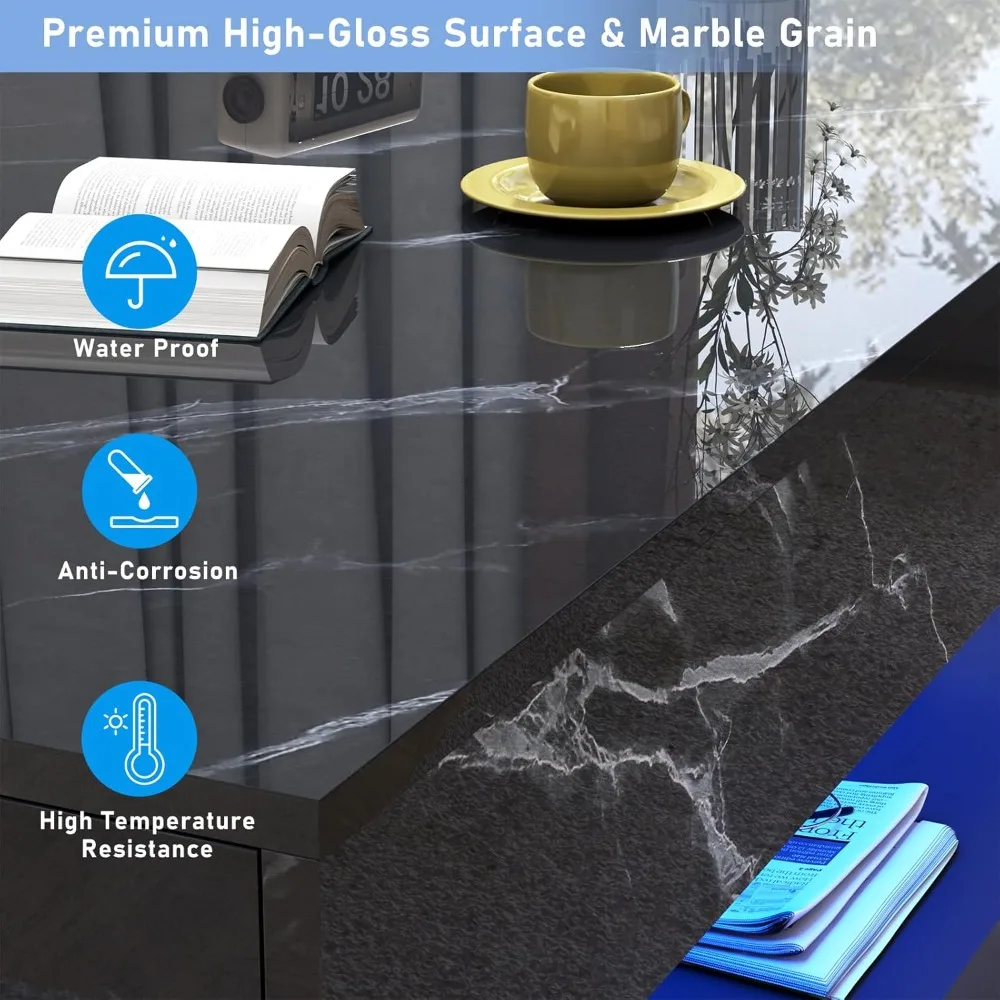 - Premium High-Gloss Effect: The high-gloss coffee table is made of premium particle board to ensure stability and durability. The surface of our coffee table for living room is designed with premium high-gloss, which is more smooth and easy to clean. Tips: The center living room table comes with a protective film on the surface, please peel it off after installation.