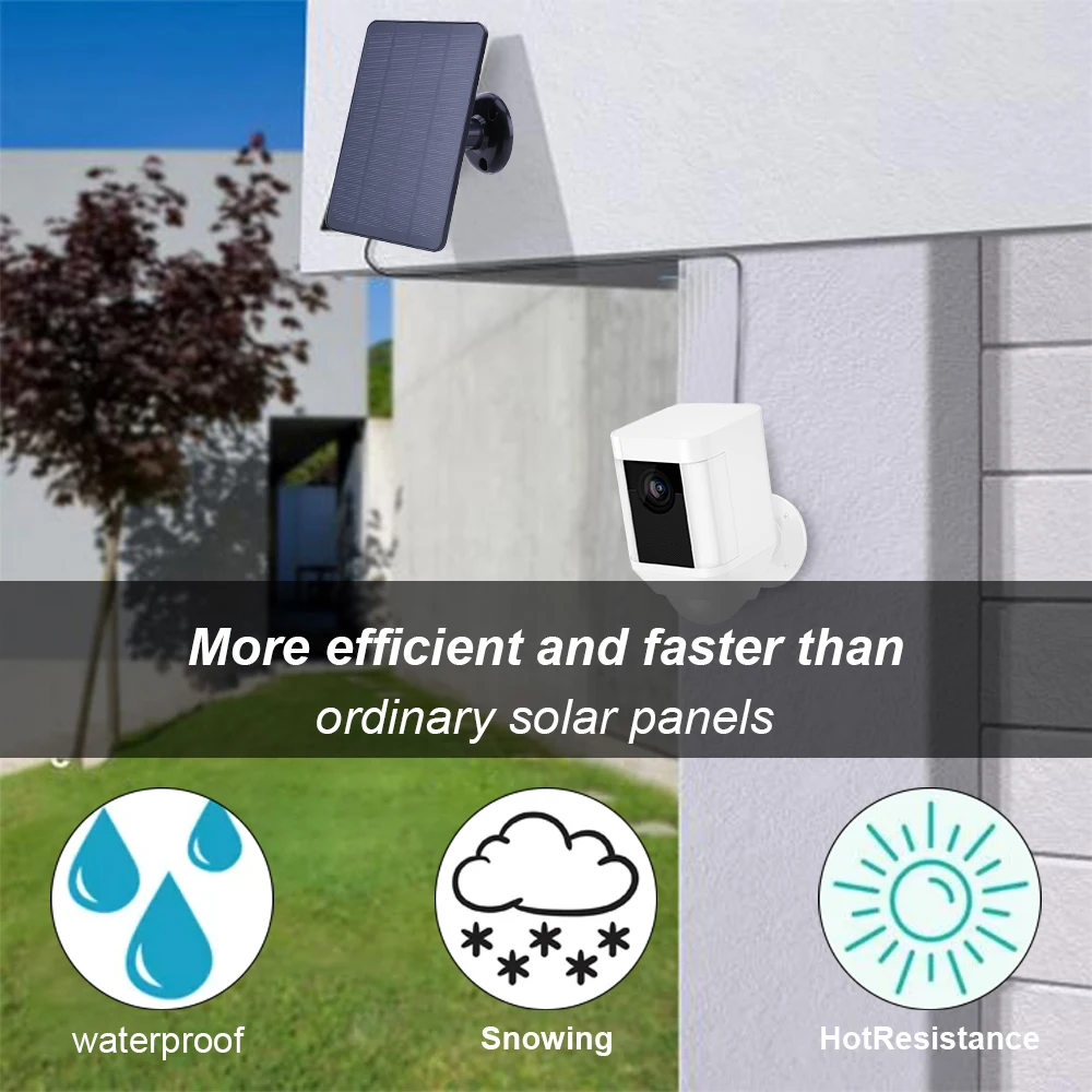 4. Higher Efficiency and Faster Charging: With a maximum power output of 4W, our solar panel is more efficient and charges faster compared to regular solar panels. You no longer have to worry about your security camera running out of power while you're away. Plus, it saves you time and frees your hands from frequent recharging.