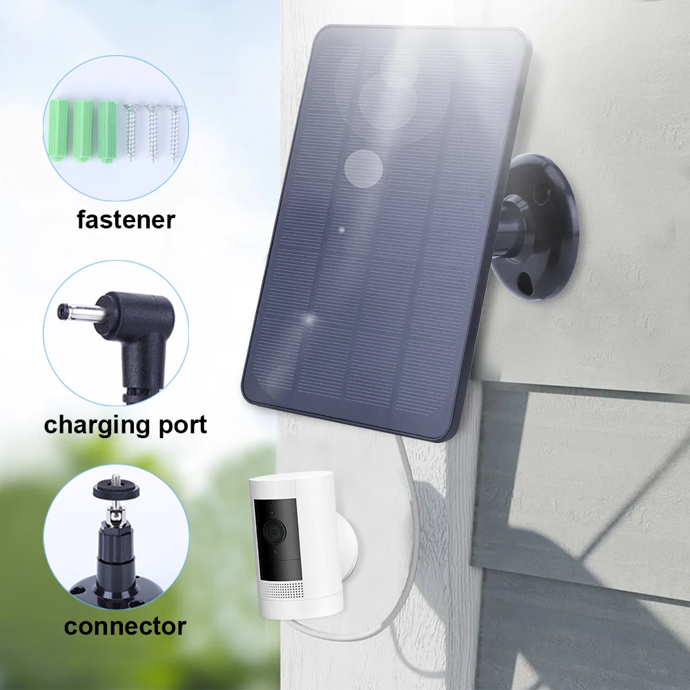 10W Solar Panel Charger Waterproof Camera Solar Panel Charger 360° Adjustable Wall Mount with 9.8ft DC5.5mm Charging Cable Compatible with Ring Stick Up Cam and Spotlight Cam