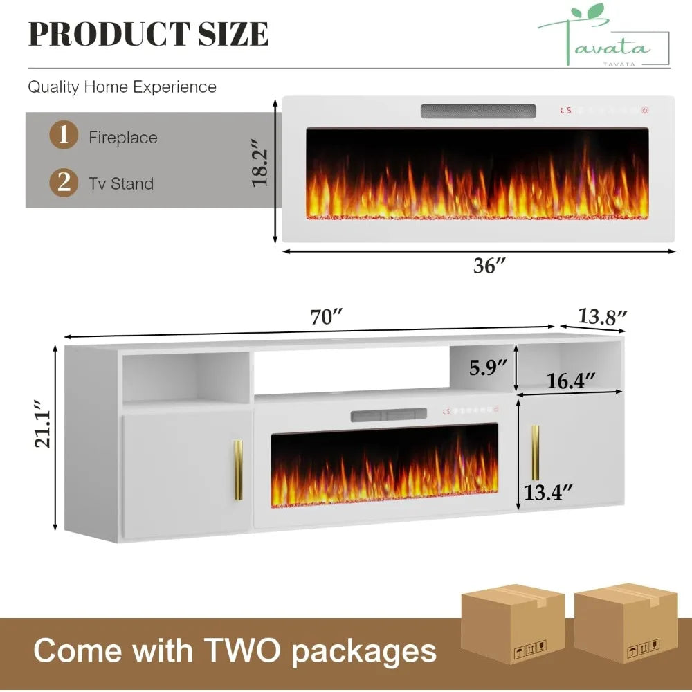 【Unique Floating Design】This fireplace TV stand combines a 70-inch floating TV cabinet with a 36-inch electric fireplace, making this TV cabinet a versatile home entertainment center.