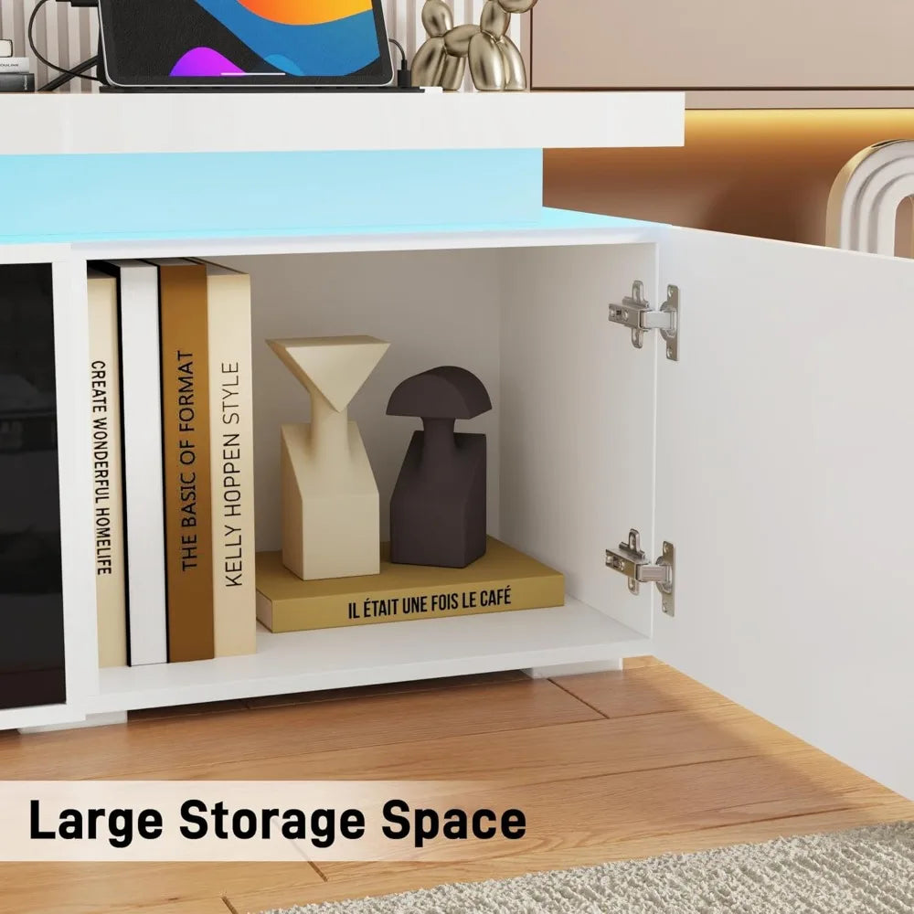 - Power Outlet and LED Light: The built-in power strip with 3-outlets and 2 USB ports provides convenience for charging your TV and other electrical devices. APP and remote control LED lights that change and dance to the sound. When you gather with family and friends, this white fireplace entertainment center with LED lights will create atmosphere for you