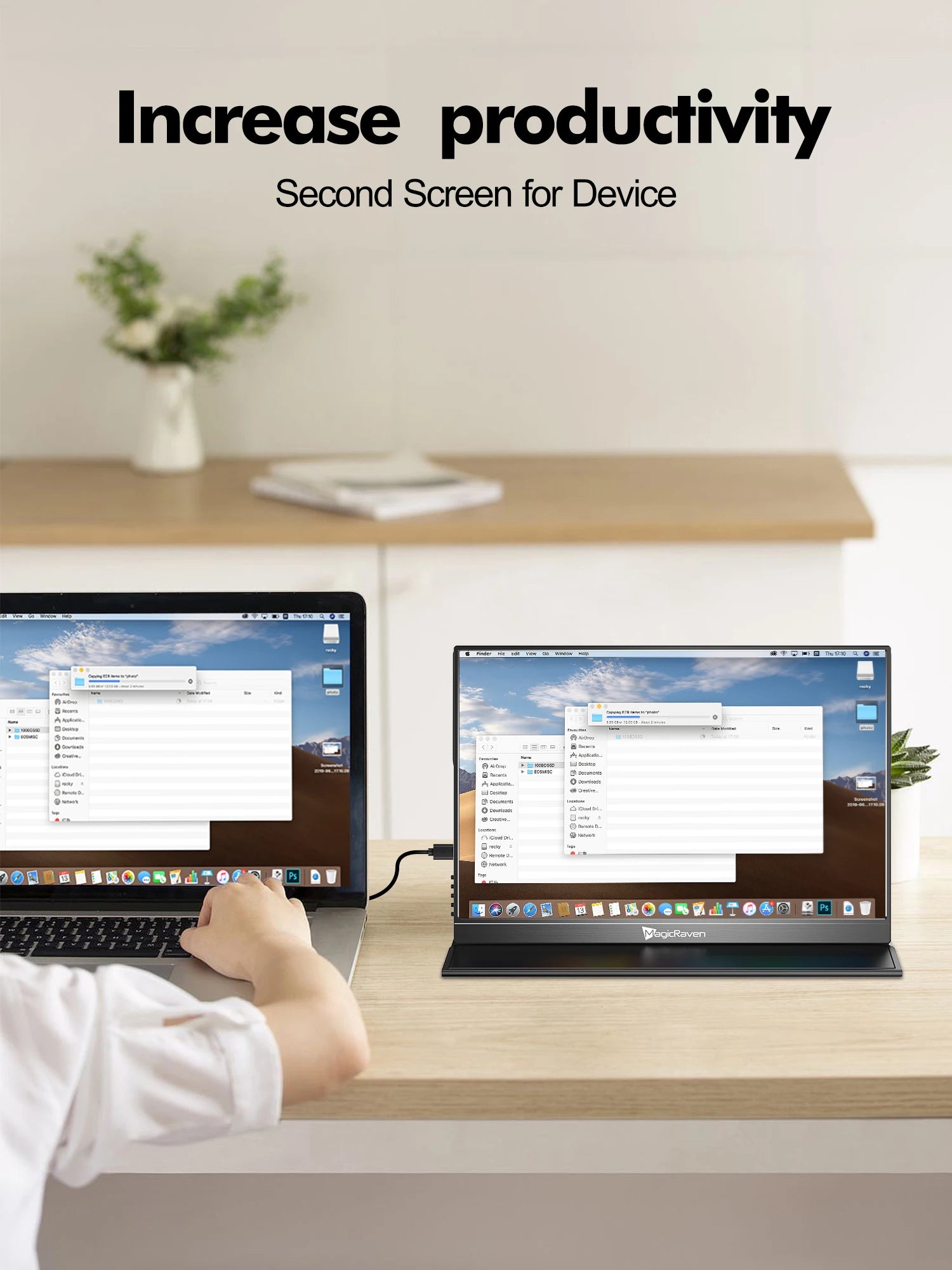 After connecting our dual monitor to your device with cable, the portable screen will work immediately without any driver installation. Increase your productivity and improve your gaming experience, a great choice for second or multiple screen.