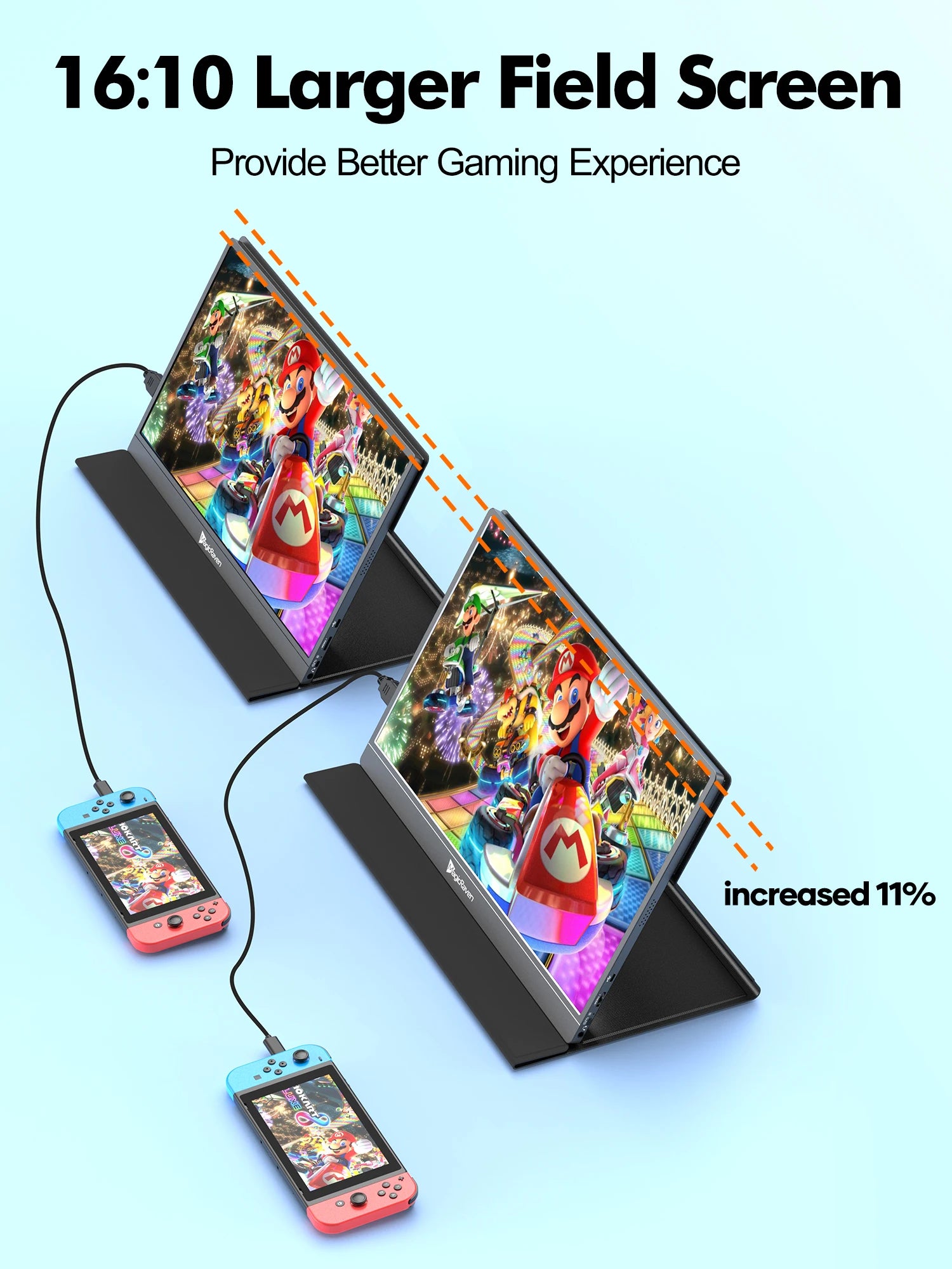 amoudo portable monitor equips spectacular IPS A-grade screen with 16 inch, 3840x2400 resolution, 400 nits brightness, 1500:1 contrast ratio, 100% sRGB, 178 degree wide viewing angle and 60 hz refresh rate. This travel monitor has HDR, Low Blue Light and FreeSync features. It will show crisp color, vivid image and clear detail.
