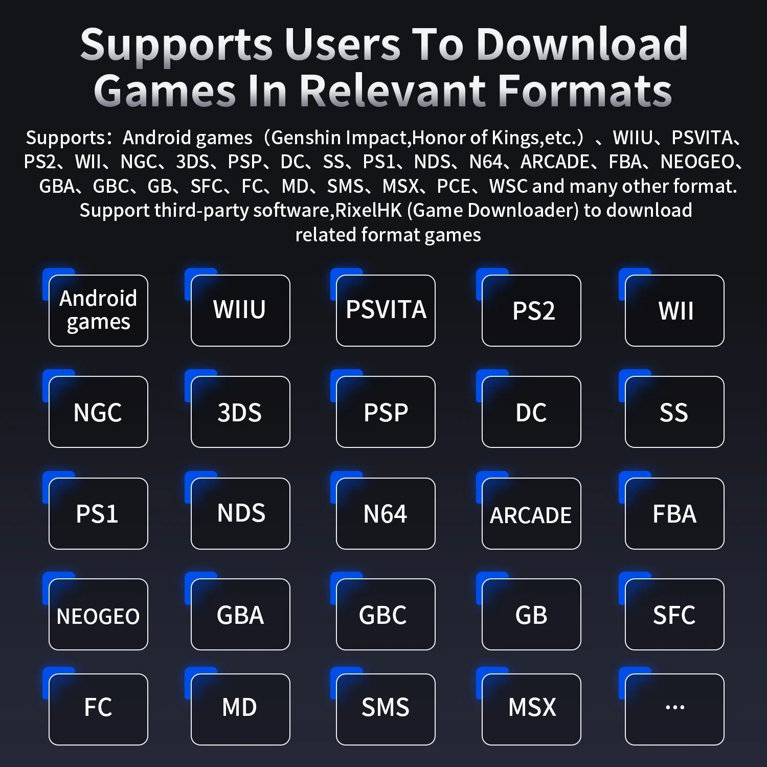 ² Supports:Android games(Genshin Impact,Honor of Kings,etc.),WIIU,PSVITA,PS2,Wii,NGC,3DS,PSP,DC,SS,PS1,NDS,N64,CPS1,CPS2,