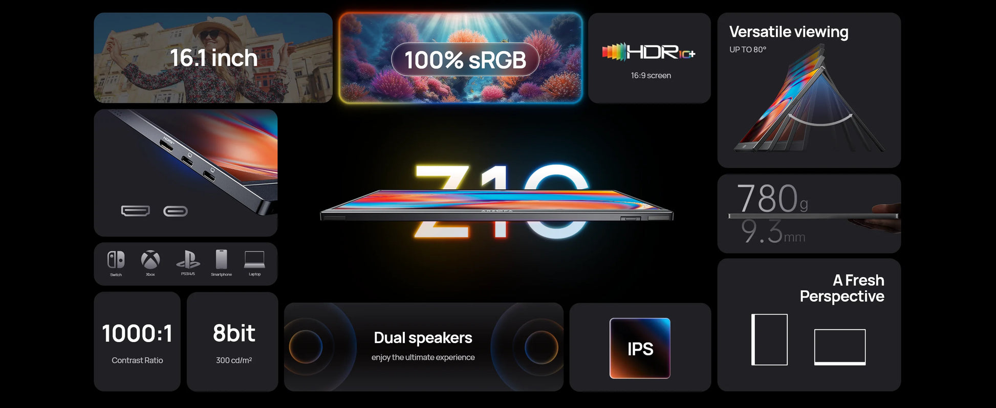 With the Z1C portable monitor, escape a tiny screen to enjoy an enhanced console gaming experience anytime and anywhere.