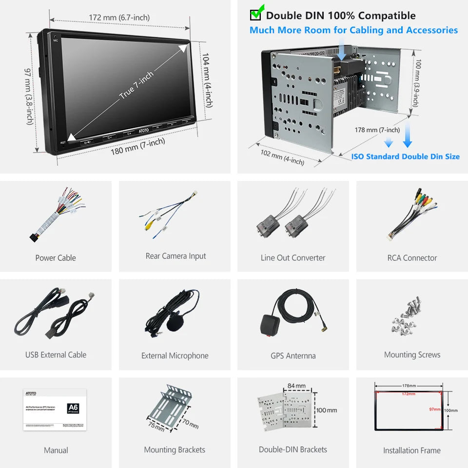 ATOTO Universal 7 inch Android Car Stereo Double 2 Din Multimedia Player Carplay Screen Android Auto 2Din Bluetooth Radio A6