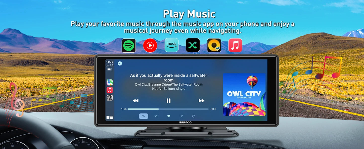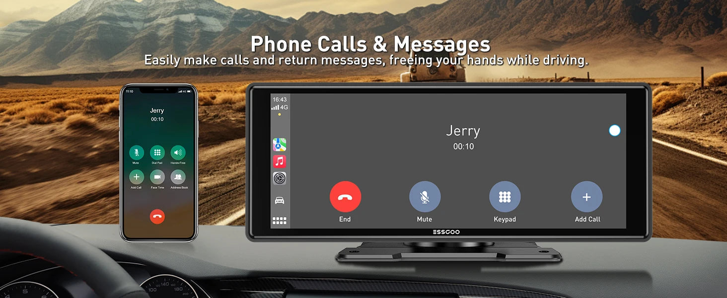 ESSGOO 10.26" portable universal car stereo Radio HD Tour screen GPS Navi WIFI Apple carplay Android auto BT MIrror link AUX FM