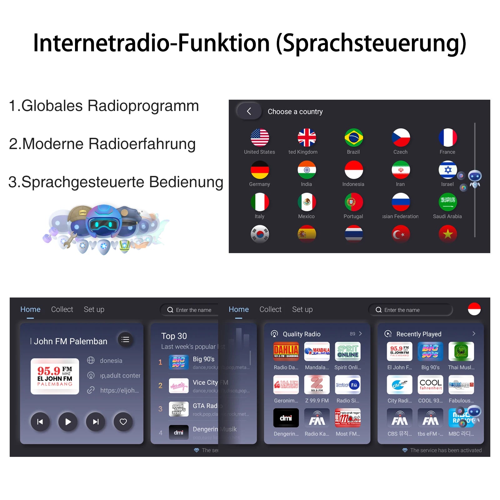 • Modern Radio Experience: No longer limited to local FM/AM/RDS/DAB stations—global entertainment is available anytime.