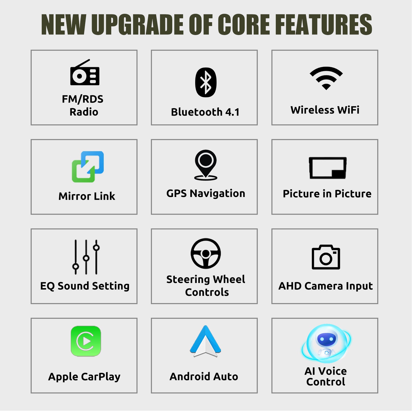 Special Features: wifi function,Support steering wheel control,Support Can-Bus,Built-in GPS,MP3 players,Voice control,CarPlay,android auto,Reversing Input,Split Screen