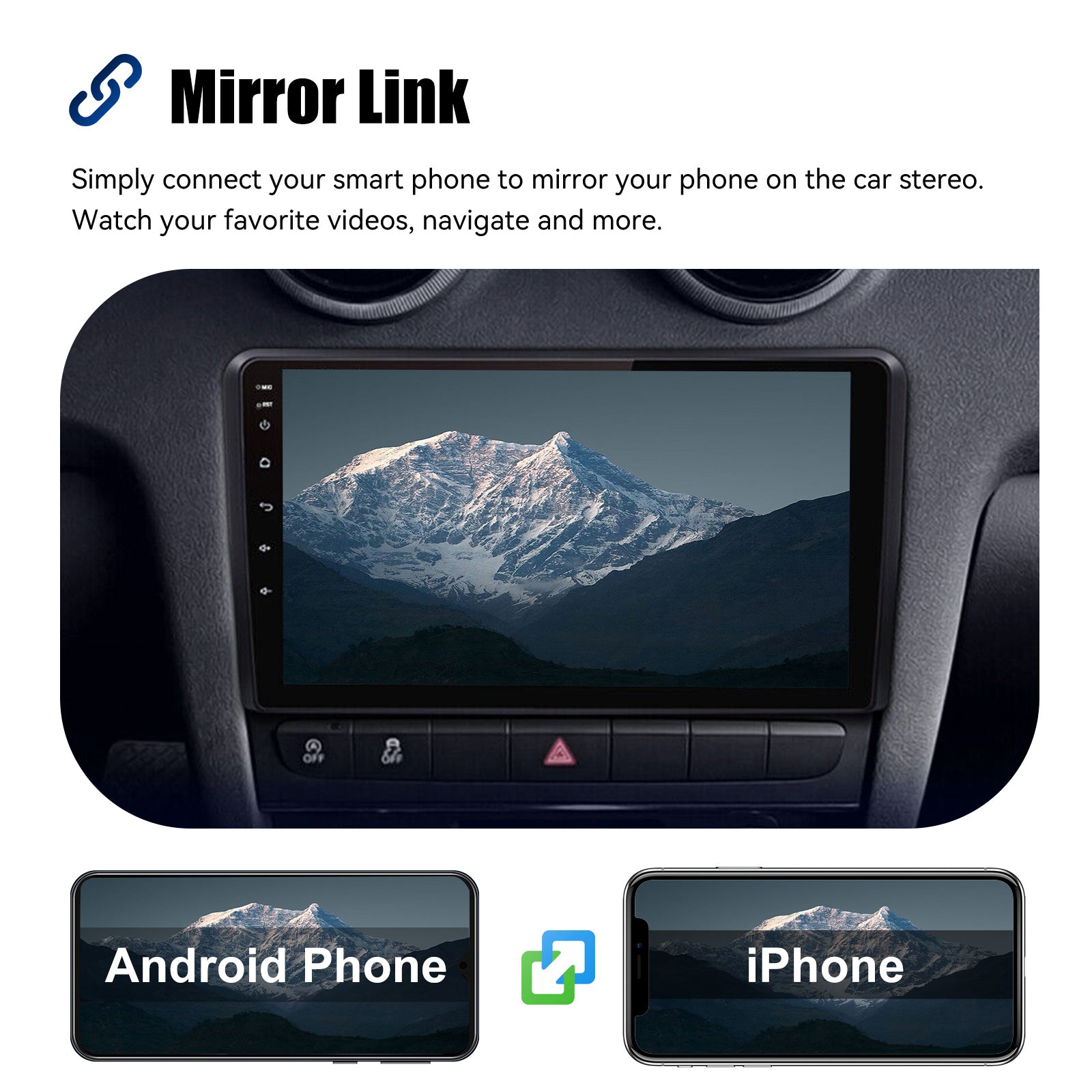 MIRROR LINK: With this car radio, you can experience the amazing Mirror Link function, compatible with iOS and Android phones. You can mirror your smartphone screen to the car radio using apps like Google Maps, Spotify, Youtube, etc. Replace your cell phone with the car screen and turn your vehicle into a smart platform.