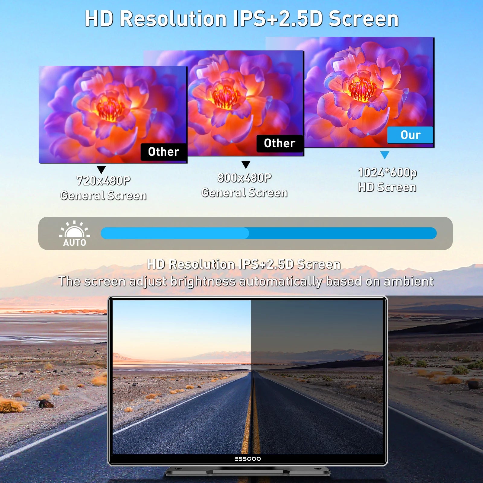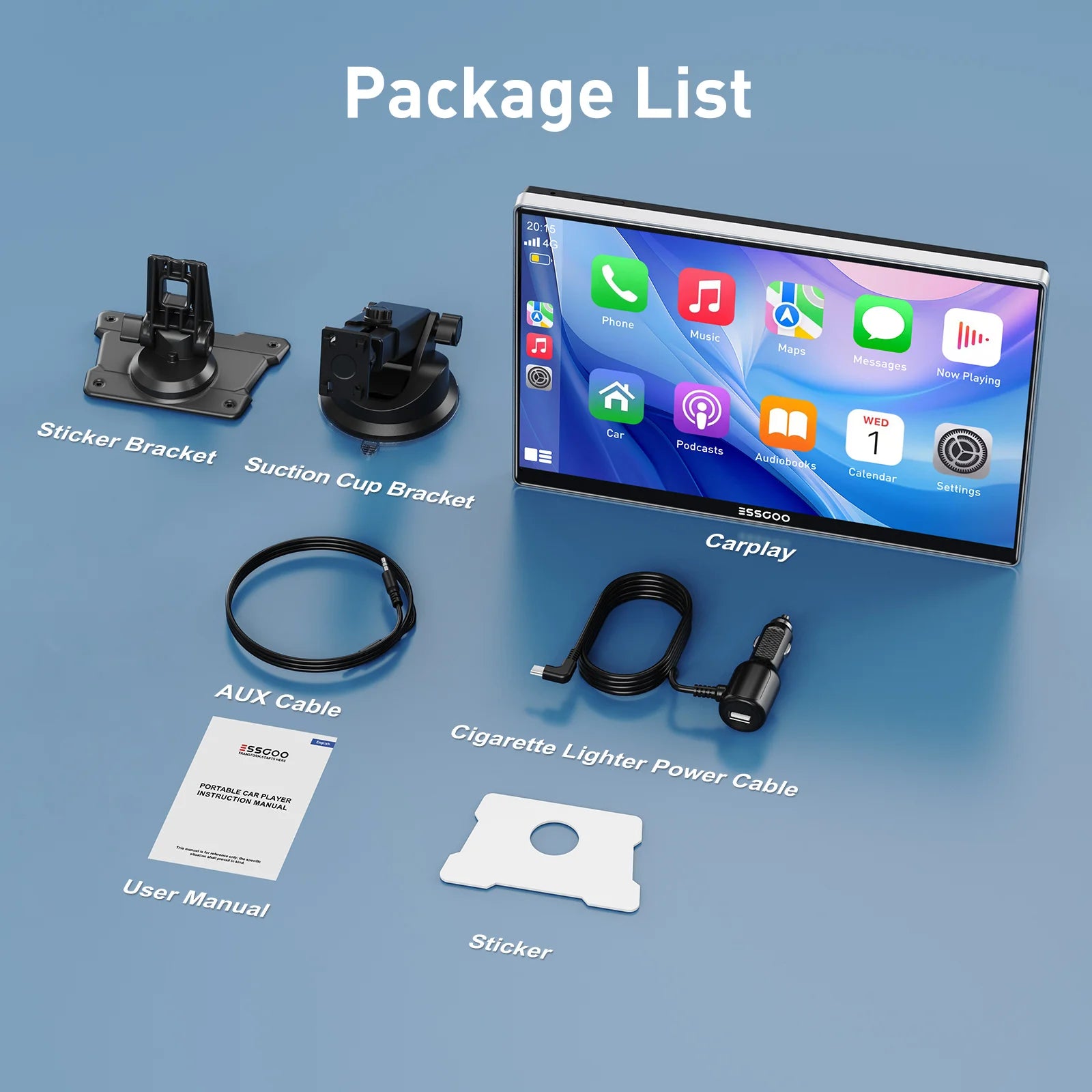 ESSGOO 9 Inch Touch Screen Portable Car Stereo Radio Wireless Apple Carplay Android Auto USB TF Bluetooth Mirror Link