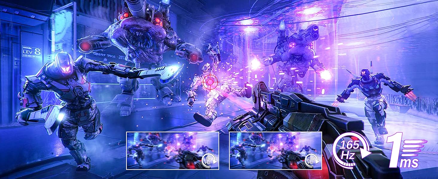 Smooth view: Immerse yourself in smoothness with built-in AMD FreeSync technology. This 24-inch PC monitor ensures seamless images, even in lightning-fast scenes. The LCD monitor has a contrast ratio of 1000:1 for impressive picture quality. With a refresh rate of up to 165Hz and a lightning-fast response time of 1ms, you won't miss a moment of action.
