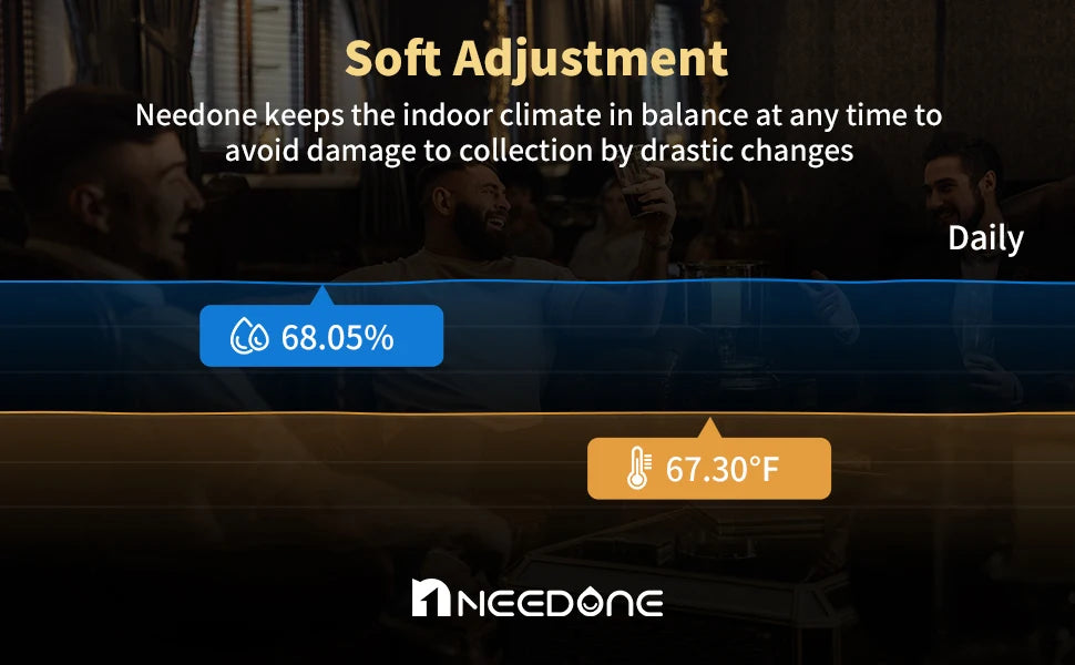 【Electronic Cooler Humidor】Temperature range of NEEDONE Cooler 54℉ to 74℉, which avoids the influence of the external environment on cabinet temperature and humidity, and provides a more suitable space for long-term storage