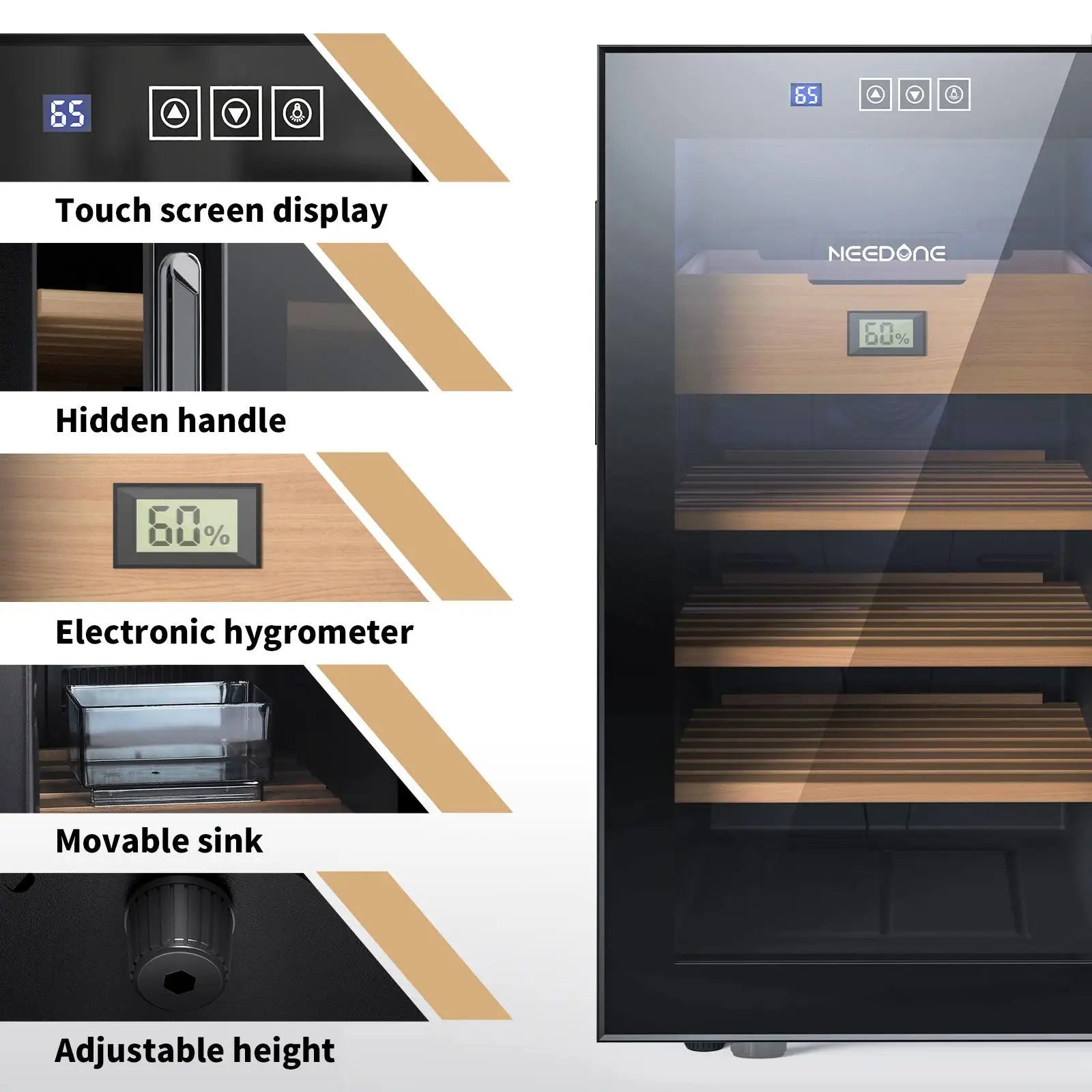 NEEDONE 48L Capacity Cigar Humidor with Heating & Cooling Temperature Control System Quiet Thermostatic Electric Cabinet Cooler