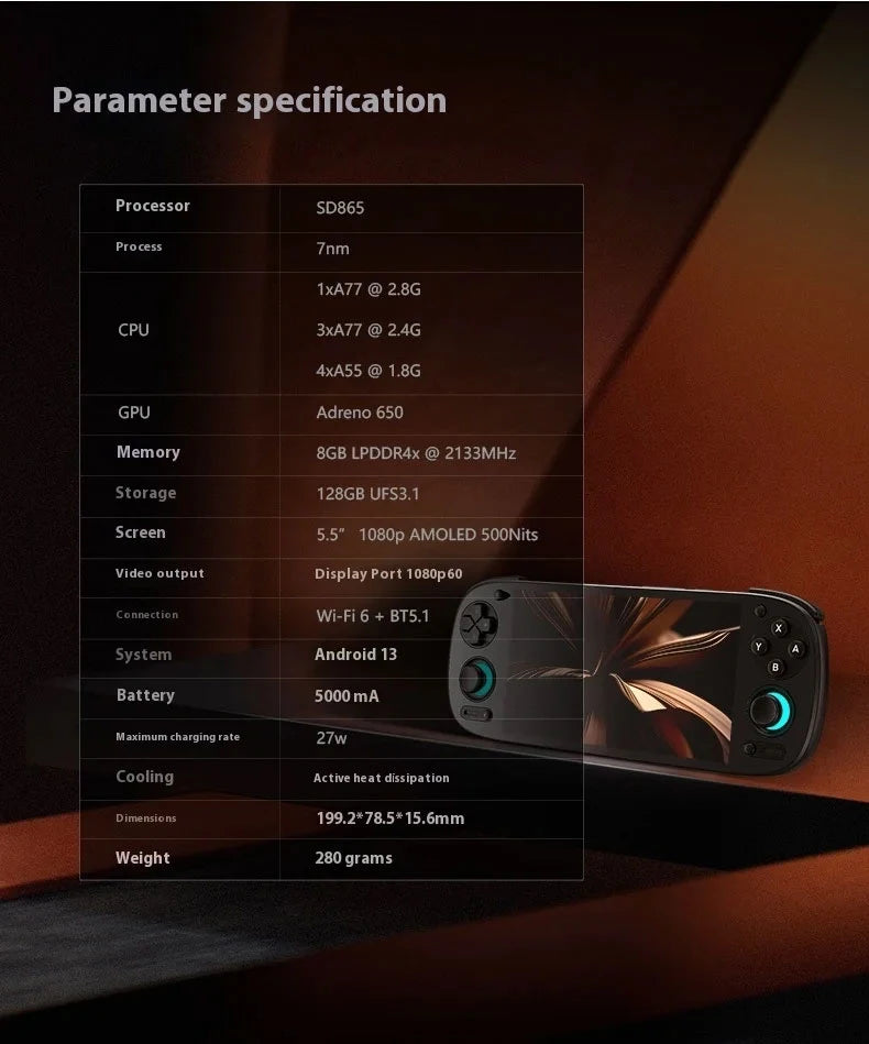 Retroid Pocket 5 Handheld Game Console 5.5'' AMOLED Screen Android13 Joystick RGB Lighting Effect Active Cooling Video Games