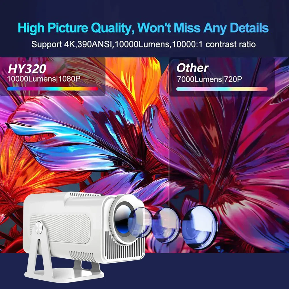 Perfect for any occasion: With 390 ANSI lumens and a 10000:1 contrast ratio, this projector delivers bright and vivid images that are perfect for outdoor movies or the comfort of your bedroom. Even in dimly lit spaces, it ensures a reliable viewing experience every time