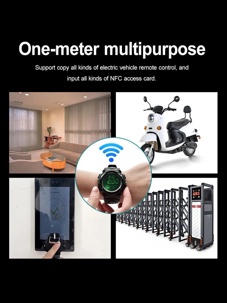 1. Built-in NFC Access: The Wireless Auto Remote Control Duplicator features an NFC access function, doubling as a watch and access card. Its multifunctional NFC chip supports various access control systems, enhancing convenience and security.