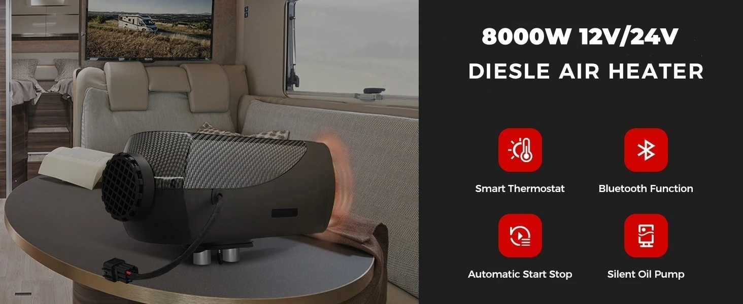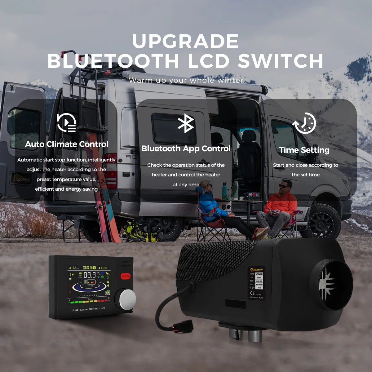 Sunster 12V 24V 8KW Diesel Air Heater Parking Heater Low noise Night Heater with LCD&Bluetooth APP Control For RV Car Truck Home