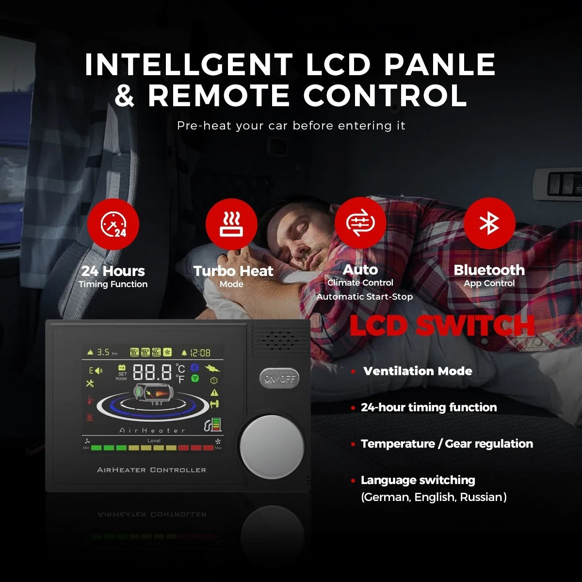 Improved LCD switch display: automatic refueling mode (saving fuel and reducing carbon buildup); Constant temperature heating (Automatic start&stop); Timing switch function(start and close according to the set time)