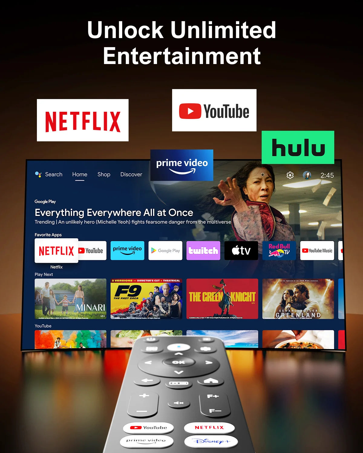 Official Android TV 11.0 Authorization: Easily stream 10,000+ apps with Android TV 11.0, including mainstream APPs like NETFLIX, HBO MAX, Hulu, Disney+, Prime Video, and more. With 2GB of RAM and 16GB of ROM, navigate effortlessly through a vast ecosystem of over 10,000 apps.