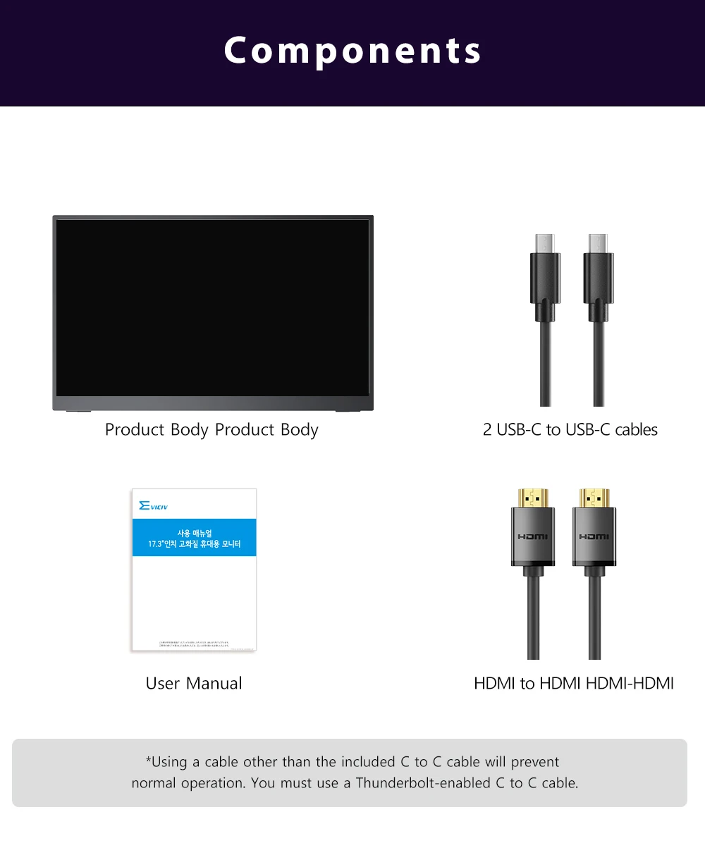 USB-C, Plug & Play Monitor: NO driver needed! Equipped with 2 full-featured USB-C ports and 1 HDMI port; Only single USB-C Cable is needed, solve the multi-wire winding problem; Easy to connect with Game Console, Laptop, PC, Tablet, Phone. Buit-in 2 speakers and 3.5 mm audio jack for better entertainment experience
