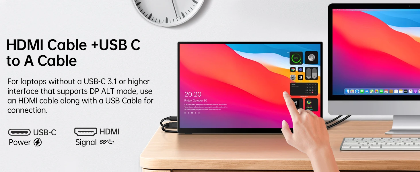 UPERFECT 18.5" TouchScreen Portable Monitor 120Hz 1MS Gaming Display 400Nits With FreeSync HDR VESA For Laptop Phone Xbox PS4/5