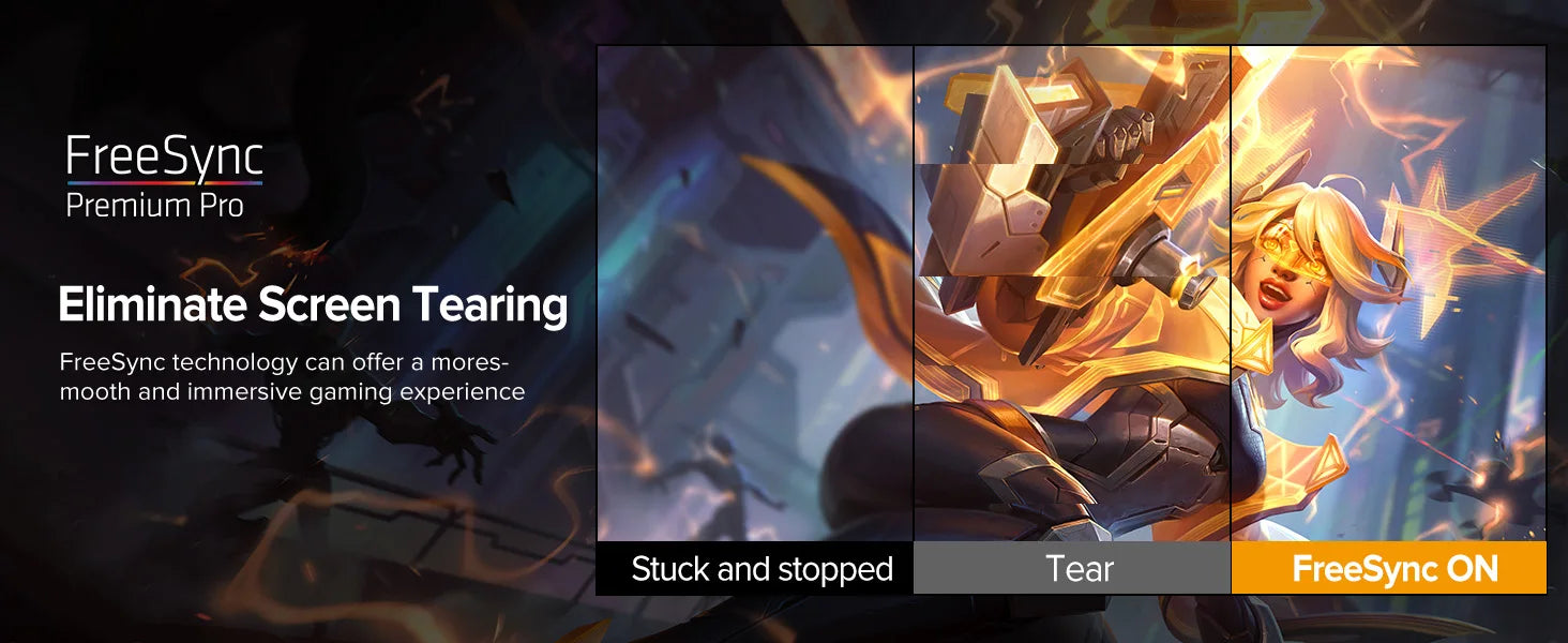 No tearing, no stuttering, just gaming! Playing games with FreeSync, get smooth feeling anytime.