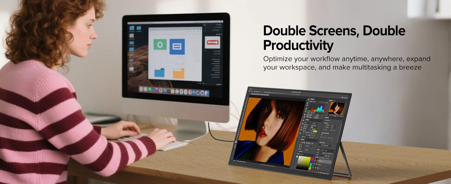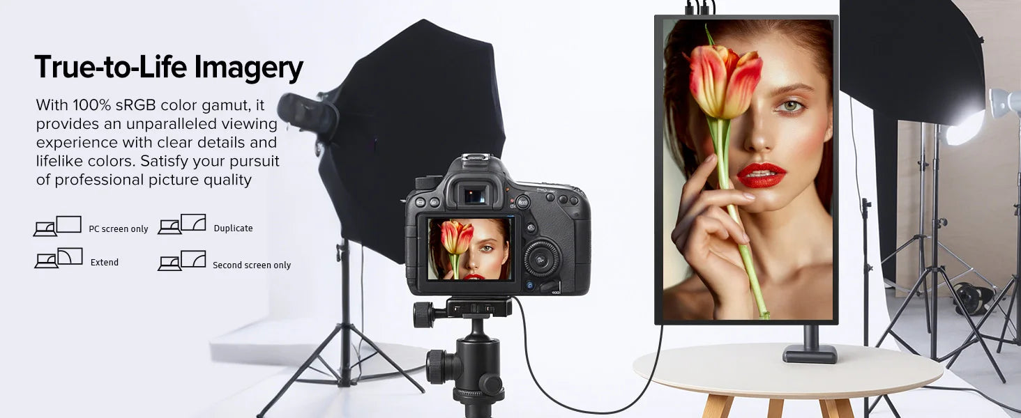 With narrow bezel, you can see more contents than other brands' in this large portable monitor.