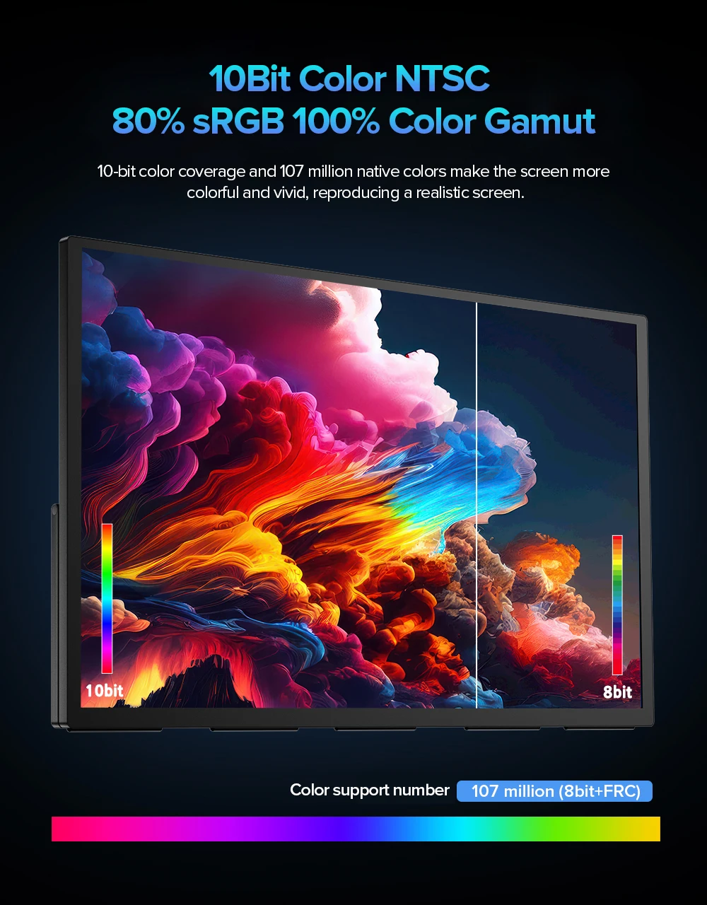 [Enjoy A Billion Colors with Incredible Depth] Explore and immerse yourself in every detail. With 4x the pixels of Full HD, every detail is viewed in enhanced depth, while more screen real estate provides space to view multiple tools, applications, and programs during the day – creating a 4K gaming content viewing experience night and day. With 100% sRGB color gamut, 4K 18 inch large gaming monitor can display more colors, and there is no pressure even in design creation.