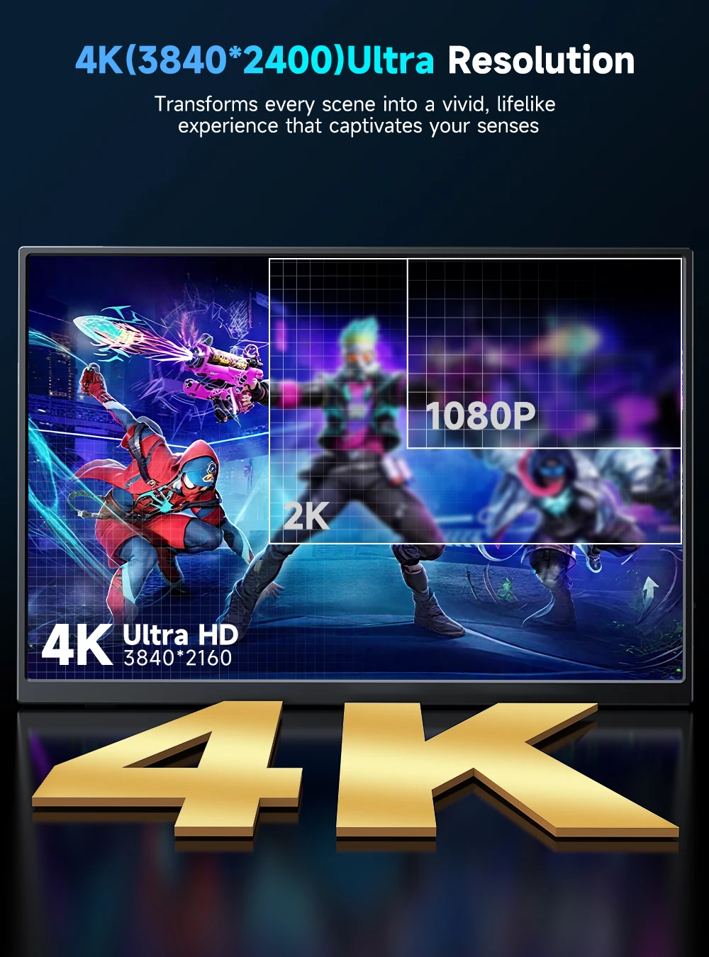 UPERFECT 4K Portable Monitor 13.4" 3840 * 2400 IPS HDMI USB C Computer Gaming Display Extenal Screen For Laptop PC Phone Switch