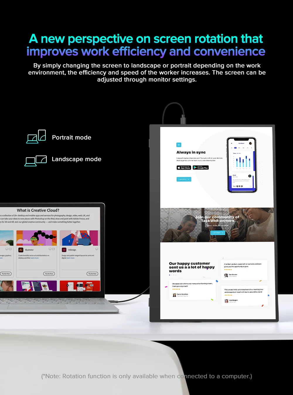 Please check the Type-C port of your PC/Laptop whether it supports the transmission of audio and video signals (Thunderbolt3). If it doesn't, you'll need a "Type-C to HDMI" adapter for signal transmission.