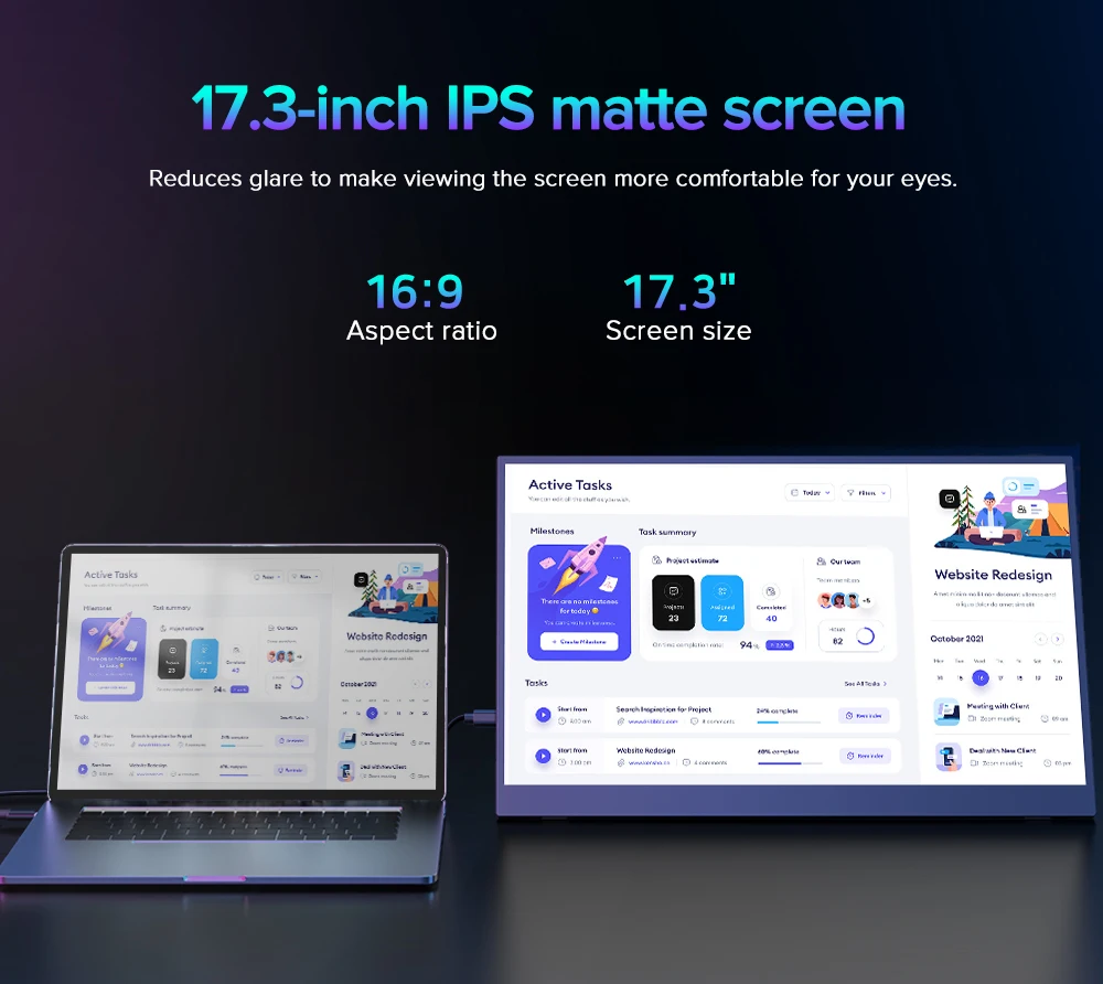 UPERFECT 4K Portable Monitor 17.3 " 3840*2160 100% Adobe IPS External Display Game PC Screen For Switch Laptop Mac Xiamo huawei