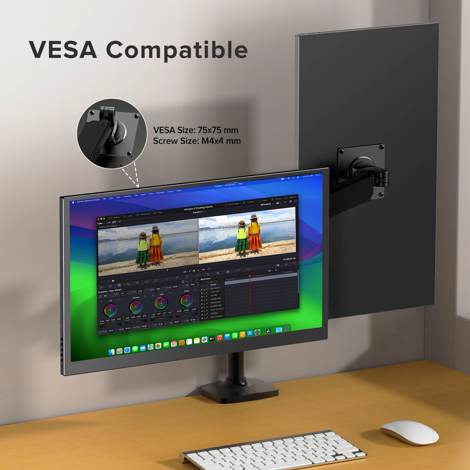 [Two Installation Methods] The 4K 18 inch large gaming monitor has a built-in adjustable stand that can support the monitor on any smooth surface. The back is designed with 4 VESA holes (75*75mm@M4*4mm), which can be installed on a bracket or wall to better fix it next to the computer and use it as a second screen.