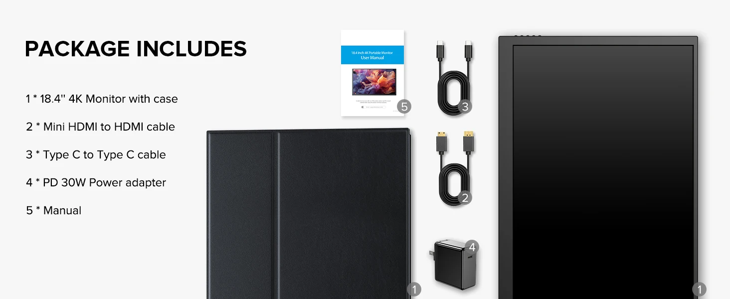 UPERFECT 4K Portable Monitor 18.4" 3840 x 2160 UHD USB-C HDMI FreeSync HDR External Computer Display with Speakers Cover VESA