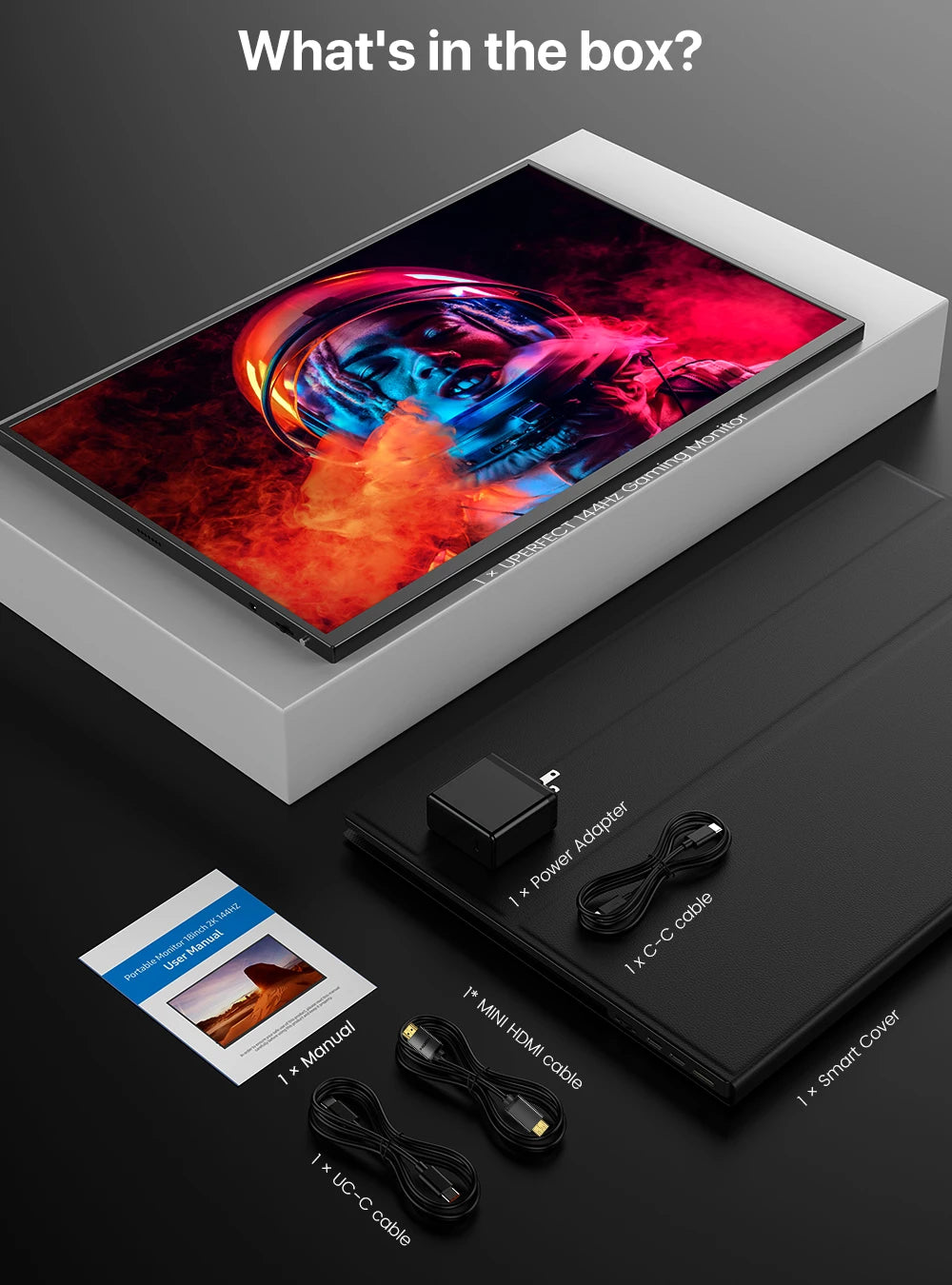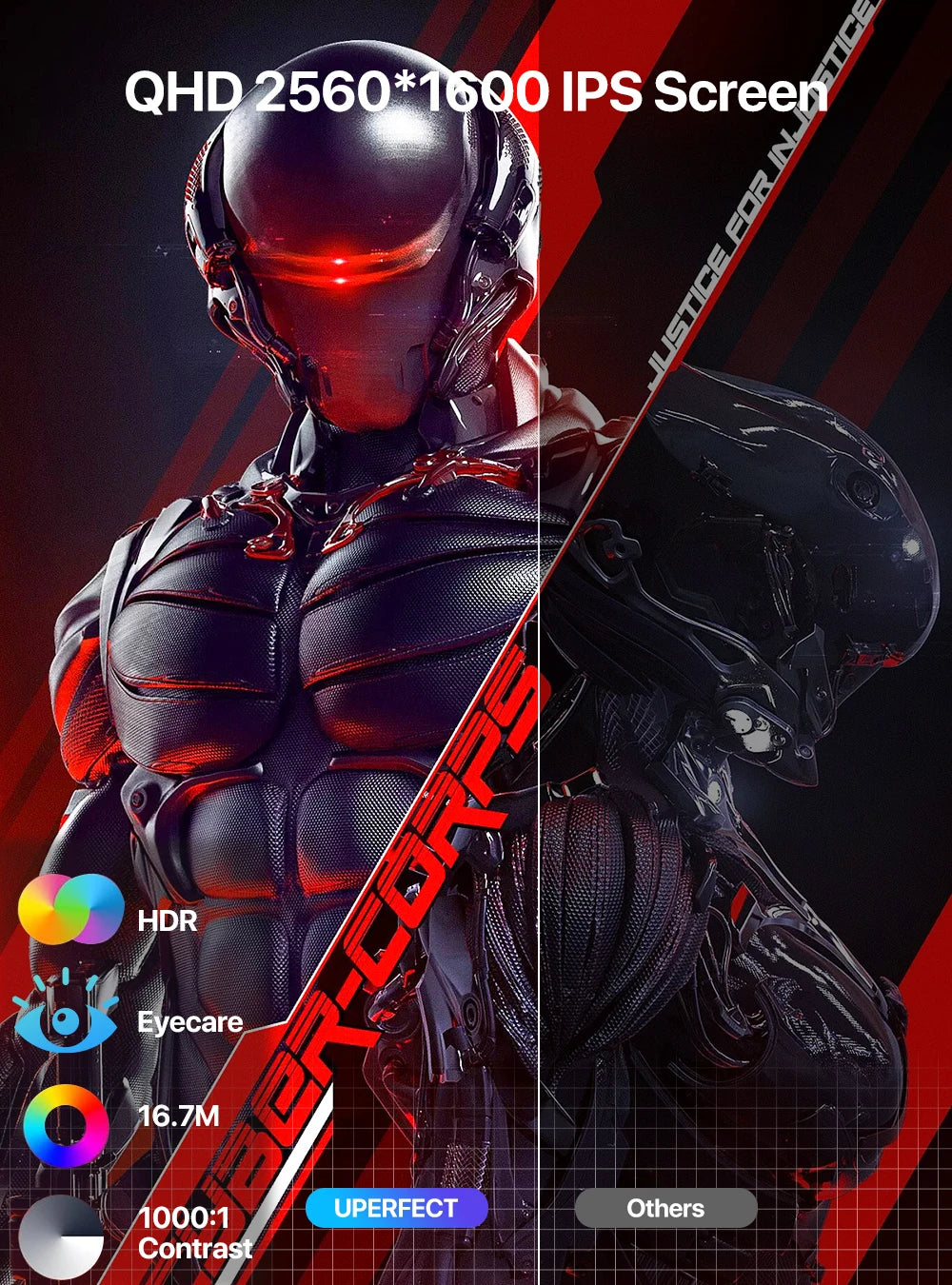 UPERFECT UGame 18 2K 144Hz Gaming Monitor 2560x1600 QHD 100% DCI-P3 Portable HDMI USB C Display For Laptop PC Mac Phone XBOX PS5