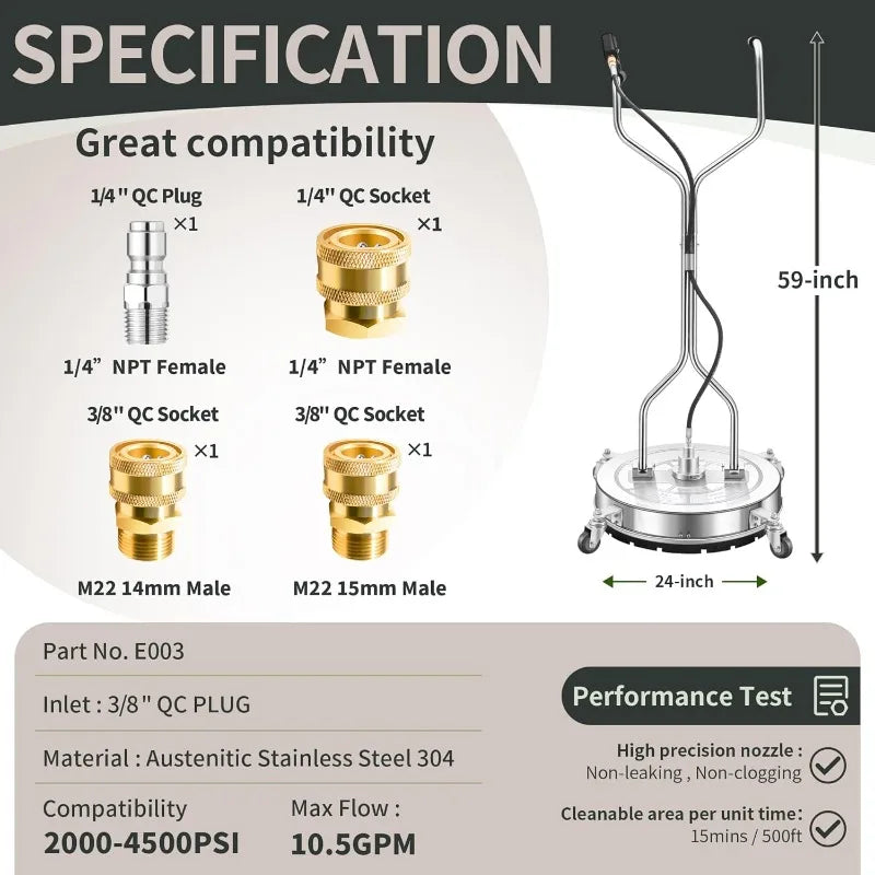 24" Pressure Washer Surface Cleaner with 4 Wheels - Stainless Steel Dual Handle Surface Cleaner for Pressure