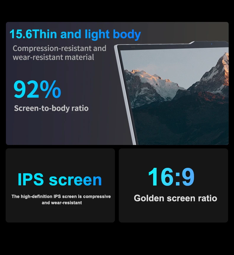 1) The 15.6-inch FHD screen provides a wider view and is still clearly visible even in strong outdoor lighting. In addition, night mode and color adjustment will help reduce eye strain.
